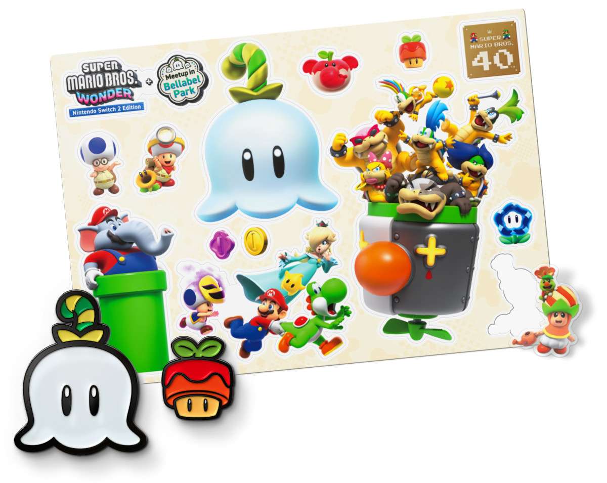 Składając zamówienie przed premierą otrzymasz dodatkowo zestaw bonusów w postaci naklejek i przypinek. UWAGA! Ilość gratisów mocno ograniczona! Jeszcze więcej wrażeń czeka na graczy przybywających do Flower Kingdom dzięki grze Super Mario Bros. Wonder – Nintendo Switch 2 Edition + Meetup in Bellabel Park. Zapraszamy do skorzystania z wielu atrakcji dostępnych na placu Bellabel Park, które umożliwiają współpracę (lub rywalizację) z przyjaciółmi i rodziną. Zbierz jak najwięcej monet, biegaj i chowaj się w grze Phanto Tag, współpracuj z innymi, aby Bob-omb dotarł do celu i wiele więcej. Wersja Nintendo Switch 2 Edition zawiera również dodatkową zawartość i ulepszenia. Więcej informacji wkrótce. W grę Super Mario Bros. Wonder – Nintendo Switch 2 Edition + Meetup in Bellabel Park można grać tylko na Nintendo Switch 2. Jeśli karta z grą zostanie włożona do konsoli Nintendo Switch, można grać w wersję gry na Nintendo Switch, bez dodatkowych funkcji dostępnych wyłącznie w Nintendo Switch 2 Edition. Jeśli posiadasz już grę Super Mario Bros. Wonder na Nintendo Switch, skorzystaj z pakietu aktualizacyjnego Upgrade Pack, aby grać w Nintendo Switch 2 Edition. |