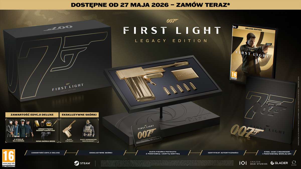 Śledź losy młodego Jamesa Bonda jako zaradnego, choć czasem również lekkomyślnego rekruta w nowym programie szkoleniowym „00” w nowej, samodzielnej historii początków najsłynniejszego szpiega świata. Po dokonaniu bohaterskiego czynu młody żołnierz sił morskich James Bond otrzymuje propozycję dołączenia do nowo reaktywowanego programu „00”. Jednak, gdy misja powstrzymania zbuntowanego agenta kończy się tragedią, marynarz musi połączyć siły ze swoim niechętnym mentorem Greenwayem, by ujawnić konspirację i zapobiec zbliżającemu się zamachowi stanu w samym sercu kraju. ZOSTAŃ 007 Odkryj nową historię początków Jamesa Bonda. Poznaj wydarzenia, które sprawiły, że młody buntownik został najlepszym agentem MI6. EKSCYTUJĄCA PRZYGODA SZPIEGOWSKA Wyruszaj na misje w zapierających dech w piersiach lokalizacjach, prowadź kultowe pojazdy i zanurz się w kinowej przygodzie w pogoni za zbuntowanym agentem, który zawsze jest o krok przed tobą. SZPIEGUJ NA WŁASNYCH ZASADACH Działaj w cieniu lub na widoku. Walcz na pięści, przy użyciu broni palnej. Korzystaj z nowoczesnych gadżetów do infiltracji wroga lub zwyczajnie blefuj, by ominąć strażników. Metody działania młodego Bonda zależą wyłącznie od Ciebie. WITAMY W MI6 Sprawdź swoje umiejętności i powtórz ulubione misje z dodatkowymi modyfikatorami, by cieszyć się niekończącą się zabawą szpiegowską! 007 First Light – Legacy Edition zawiera: