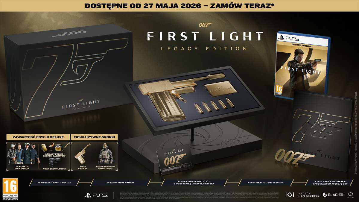 Śledź losy młodego Jamesa Bonda jako zaradnego, choć czasem również lekkomyślnego rekruta w nowym programie szkoleniowym „00” w nowej, samodzielnej historii początków najsłynniejszego szpiega świata. Po dokonaniu bohaterskiego czynu młody żołnierz sił morskich James Bond otrzymuje propozycję dołączenia do nowo reaktywowanego programu „00”. Jednak, gdy misja powstrzymania zbuntowanego agenta kończy się tragedią, marynarz musi połączyć siły ze swoim niechętnym mentorem Greenwayem, by ujawnić konspirację i zapobiec zbliżającemu się zamachowi stanu w samym sercu kraju. ZOSTAŃ 007 Odkryj nową historię początków Jamesa Bonda. Poznaj wydarzenia, które sprawiły, że młody buntownik został najlepszym agentem MI6. EKSCYTUJĄCA PRZYGODA SZPIEGOWSKA Wyruszaj na misje w zapierających dech w piersiach lokalizacjach, prowadź kultowe pojazdy i zanurz się w kinowej przygodzie w pogoni za zbuntowanym agentem, który zawsze jest o krok przed tobą. SZPIEGUJ NA WŁASNYCH ZASADACH Działaj w cieniu lub na widoku. Walcz na pięści, przy użyciu broni palnej. Korzystaj z nowoczesnych gadżetów do infiltracji wroga lub zwyczajnie blefuj, by ominąć strażników. Metody działania młodego Bonda zależą wyłącznie od Ciebie. WITAMY W MI6 Sprawdź swoje umiejętności i powtórz ulubione misje z dodatkowymi modyfikatorami, by cieszyć się niekończącą się zabawą szpiegowską! 007 First Light – Legacy Edition zawiera: