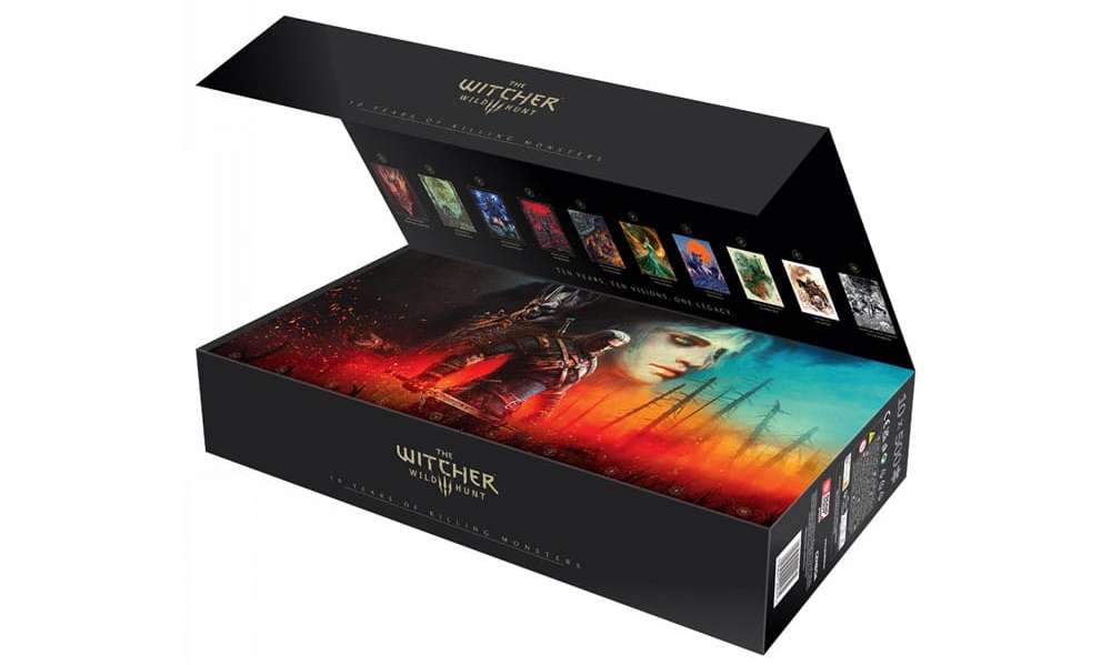 The Witcher – Kolekcja puzzli 10-Pack na 10-lecie (500 elementów) Świętuj dekadę niezwykłych przygód w świecie Wiedźmina dzięki wyjątkowej kolekcji puzzli stworzonej z okazji 10-lecia serii. Ten jubileuszowy zestaw to prawdziwa gratka dla fanów uniwersum — 10 oficjalnie licencjonowanych wzorów, które przeniosą Cię do mrocznego, pełnego potworów i legend świata Geralta z Rivii. W zestawie znajdziesz: