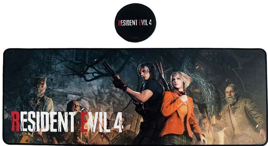 Resident Evil 4 – podkładka na biurko + coaster (oficjalna licencja) Pierwszy raz wydana w 2005 roku, a w 2023 doczekała się świetnego remake’u – Resident Evil 4 to absolutna legenda survival horroru. Jeśli ta gra ma u ciebie specjalne miejsce, to ten zestaw na biurku zrobi robotę. Na podkładce zobaczysz porwaną Ashley Graham oraz jej wybawcę, Leona S. Kennedy’ego. Do tego coaster z kultowym logo Resident Evil 4. Mały detal, a klimat od razu wskakuje na wyższy poziom. Oficjalna licencja i solidne wykonanie To w pełni oficjalnie licencjonowany produkt, więc jakość nadruku i detali stoi na wysokim poziomie. Wzmocnione, obszyte krawędzie zapobiegają strzępieniu, a antypoślizgowa, gumowa podstawa trzyma się biurka jak trzeba. Komfort na co dzień Powierzchnia z mikroteksturowanej tkaniny zapewnia płynny ruch myszki, niezależnie czy grasz, czy pracujesz. Duży rozmiar sprawia, że bez problemu zmieścisz klawiaturę i mysz, a wszystko będzie wyglądało spójnie. Wymiary